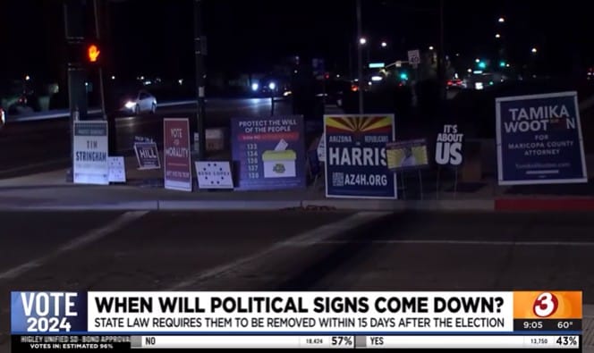 SB1134, sponsored by David Gowan (R-19), would allow political signs starting 71 days before the first day that early ballots are mailed, instead of 71 days before the election. That's about an extra 40 days. Nearly universally, Arizonans say they hate political signs, calling them "a nuisance," "ugly," and "trash"; every two years, one of the most common questions journalists get is when those signs will finally come down.