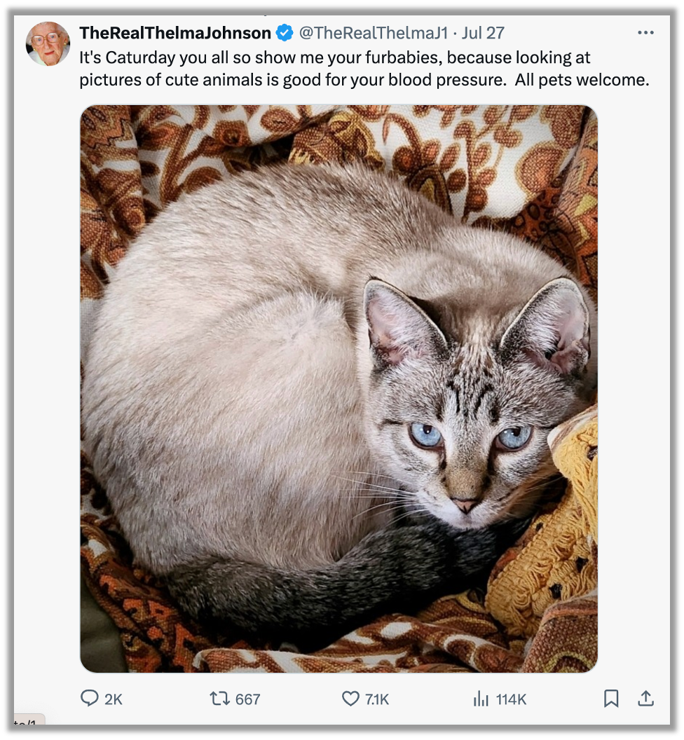 Elon is a total douchelord. It's difficult on Twitter some days because Elon's Twitter feed is a continuous stream of MAGA propaganda. You don't see any other platform owners doing this. Imagine if Mark Zuckerberg hopped on Instagram every day to push conspiracies like the Great Replacement theory. It's crazy, but it's clearly the reason he bought the platform in the first place. Still, there are so many good people on Twitter who keep me going that it would be hard to lose them, including you all!