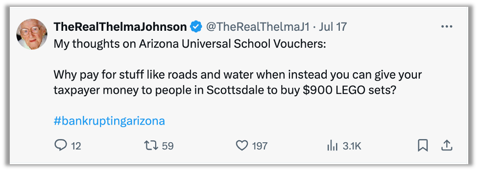 12. What's going on with these ESA vouchers? Is that a good use of taxpayer money, instead of upgrading roads, improving infrastructure, providing health care, or funding public schools?
