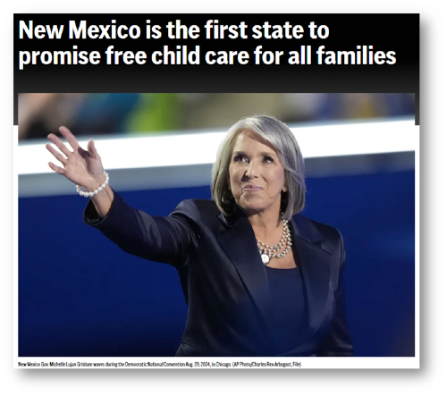 Lujan Grisham says it’s life-changing for parents to have free child care, since it means more money can be spent on utilities and groceries.