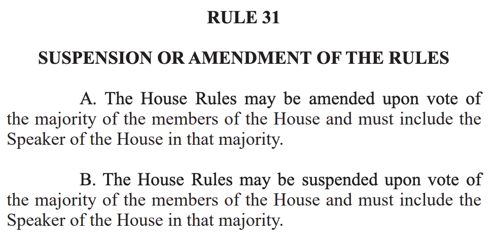 Several House Republicans were ready to vote to change Livingston’s bill — but they couldn’t do so with leadership against them. And they won’t be able to do it later, either: House rules say no rule can be changed or suspended (such as bringing stalled bills up for a vote) without approval from the House Speaker.