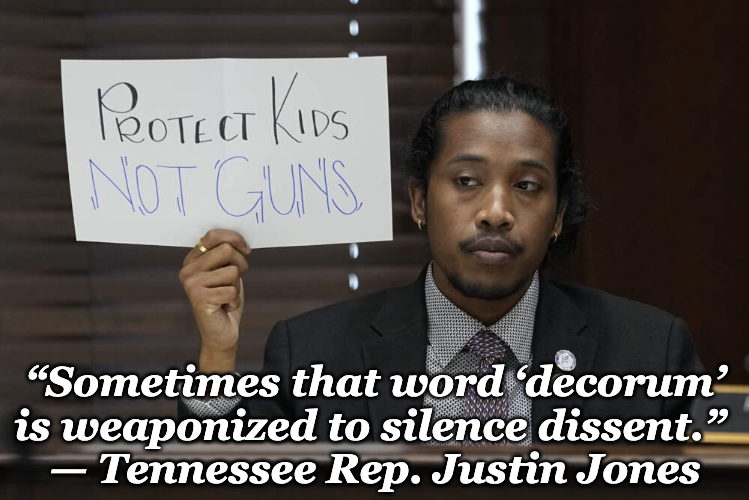 This overreliance on “decorum,” “procedure” and “regular order” — in other words, hiding behind the rule book instead of standing firm on one’s moral convictions — is one of the most craven, reprehensible failings a politician can have. It signals a desire for power and control rather than a willingness to listen to constituents, much less the still, small voice within3 that tells each one of us to do the right thing.