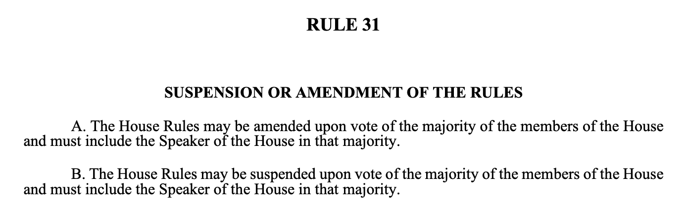What does “rolling” have to do with it? A rule adopted last year by House Republicans says any change in rules, including the procedure needed to bring a repeal bill to the floor, requires not just a majority vote of the chamber but also the consent of the speaker. This rule change effectively gives Speaker Ben Toma (R-27) unilateral veto power1 — and Toma has vowed to continue to block any effort to repeal the 1864 law.