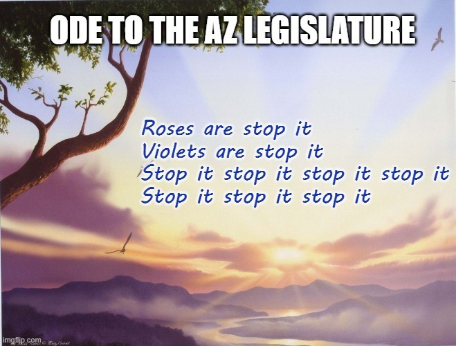 SB1287, sponsored by Jake Hoffman (R-15), would ban district and charter schools from exposing minors to so-called "sexually explicit materials." The incredibly broad description includes text, audio and video that references sexual contact, sexual excitement, and even physical contact with a person's clothed or unclothed buttocks. This would ban many classic works of literature, from Shakespeare to Maya Angelou. Violations would be a class 5 felony, punishable by up to 2 years in jail. Arizona law already covers this subject. Gov. Hobbs vetoed the same bill last year. Scheduled for Senate Government Committee, Wednesday. OPPOSE.
