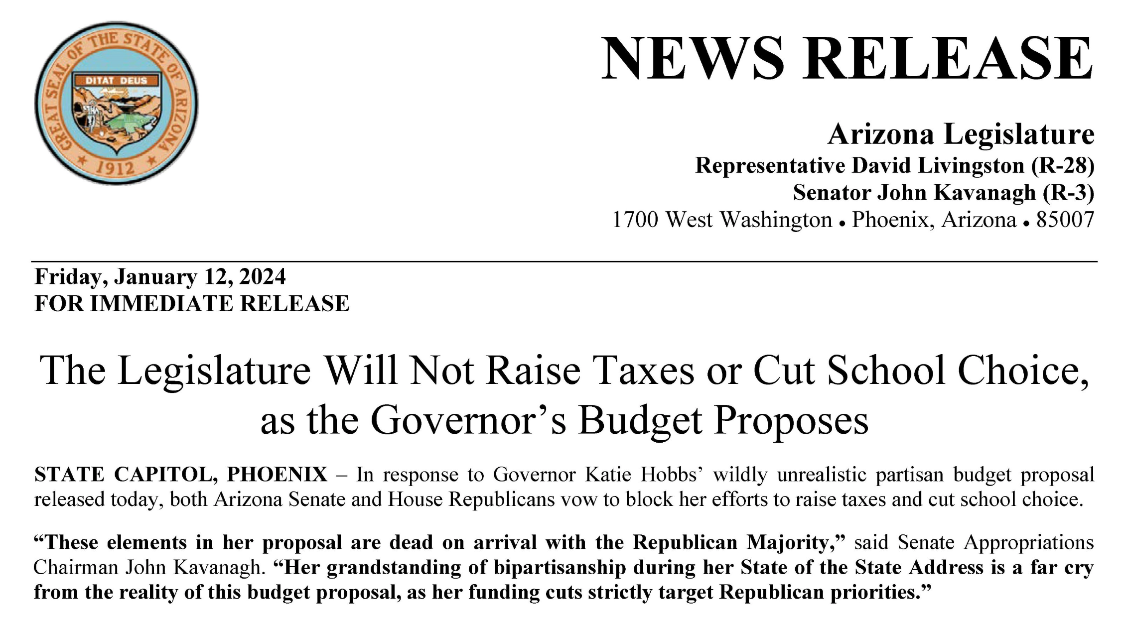 The nation is watching as today’s Arizona GOP drives our state’s budget into a crater, while the culpable lawmakers clutch their pearls and hyperventilate over the fiscally prudent alternative Gov. Hobbs is presenting. As journalist Jim Small points out, Gov. Hobbs is using her budget proposal to “show voters the Arizona she thinks is possible, and then let Republicans demonstrate exactly why it won’t happen” — teeing up a sea change for November.