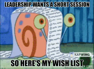 Tuesday, 4/16 100th Day of Session (the stated end goal; can be changed)