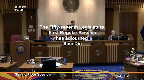 An exercise in futility. On Wednesday, with a series of mass motions (which we’ve never before seen happen with budget bills), the Senate passed BOTH sham House budgets. The 28 bills all passed along party lines, with only Republicans in support. Senate president Warren Petersen said he allowed the votes “out of respect,” then made it clear in his comments what he really thought.