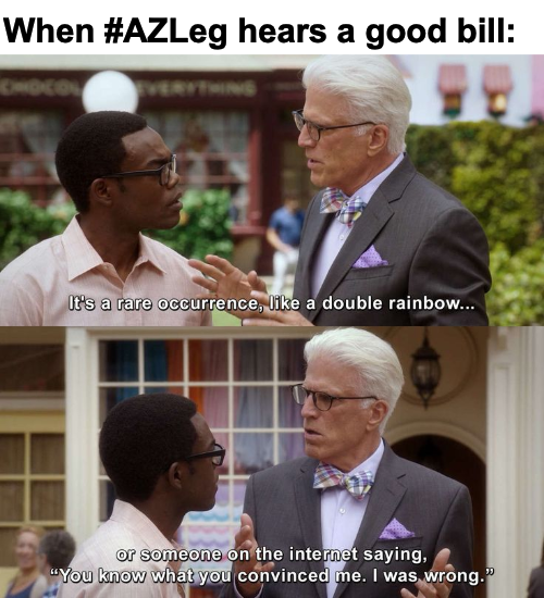 SB1694, sponsored by David Farnsworth (R-10), would ban Arizona universities from receiving state funds in any fiscal year in which they offer "courses on diversity, equity, and inclusion." These frameworks seek to promote fair treatment of all people, particularly groups that have historically been underrepresented or subject to discrimination. This bill not only pretends our differences don’t exist, but would hamstring the ability of our state universities to provide a competitive education compared to other states that have no such asinine requirement. As one student pointed out, “This is not about money; this is about erasure.” Scheduled for House Education Committee, Tuesday. OPPOSE.