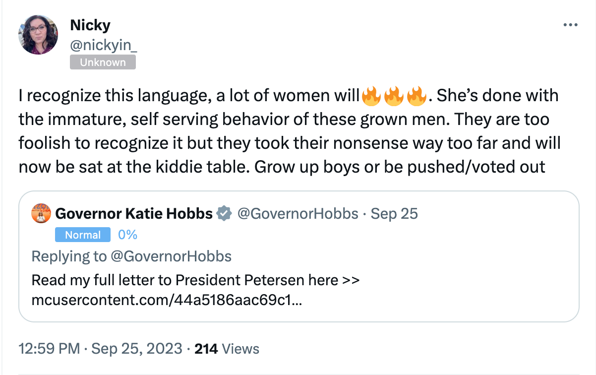These antics are a gamble that appears to be backfiring. One Capitol insider called Treasurer Yee’s attack on Gov. Hobbs “expert-level trolling.” The most common responses to his quip were perceptiveness (“this is disingenuous, politically-driven and uncalled-for snark”), disgust (“We are paying her to be a professional. I’m so sick and tired of them”), and exasperation (“Yee is paid to be Treasurer, not Troll”).