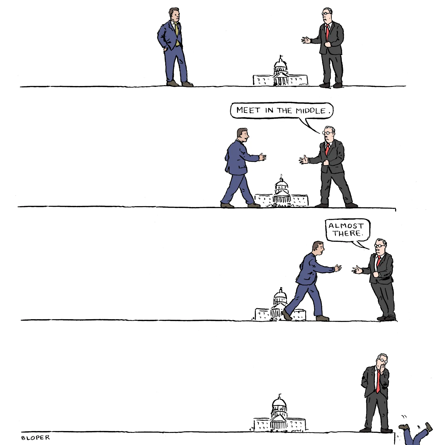By making deals with bad actors like these, compromise Democrats are signing a death warrant for progress. When your opponents' goal is to remove even the slightest possibility that anyone else might ever govern, and they are willing to see even the most microscopic win as a step toward that goal, "compromising" with them is — to say the least — counterproductive.